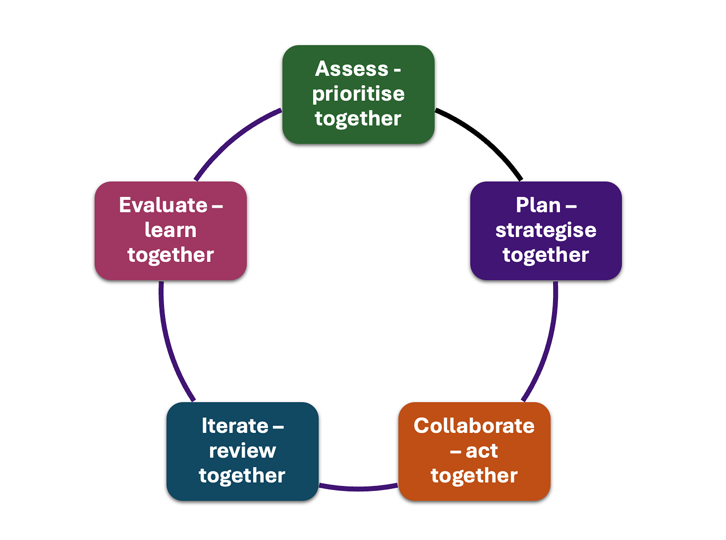 To illustrate this in practice, I’ve adapted the ‘continuous improvement cycle' to show how participation, inclusion and collaboration can be embedded at every stage of a project or programme.
